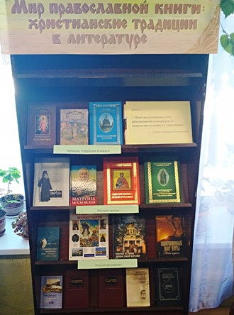 В рамках празднования Дня православной книги в Летнереченской сельской библиотеке для читателей организована выставка «Мир православной книги: христианские традиции в литературе». Библиотекарь Вера Григорьевна Иванова для актива женского клуба «Встреча» провела час духовной информации «Христианские традиции в литературе».