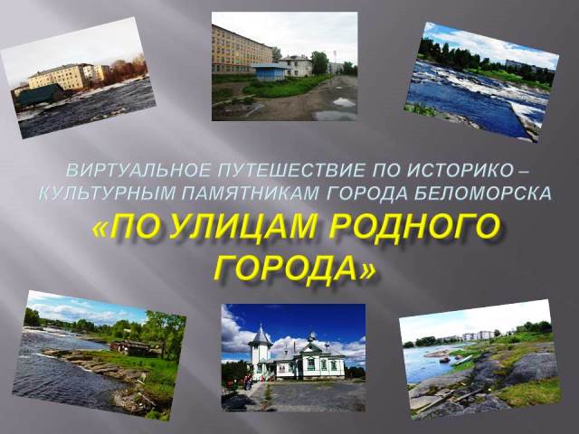 История нашей Родины для каждого человека начинается с порога родительского дома, родной улицы, города, достопримечательностей, предметов народного быта, монументально–скульптурных композиций. Рассказать о том, как люди жили, о чем думали и мечтали, что делали - донести до нас эту историю предназначено памятникам. Предлагаем вам отправиться в виртуальное путешествие по историко–культурным памятникам города Беломорска «По улицам родного города».