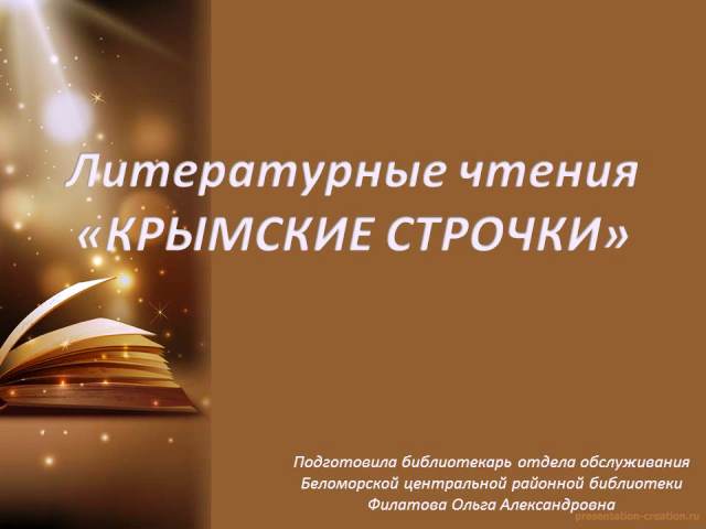 Каждое поколение русских писателей по-своему воспринимало Крым, но ни для одного из них этот полуостров не был только лишь красивым и тёплым местом отдыха. Здесь создавались великие произведения, менялся взгляд на мир. Предлагаем вашему вниманию литературные чтения «Крымские строчки», приуроченные ко Дню воссоединения Крыма с Россией.