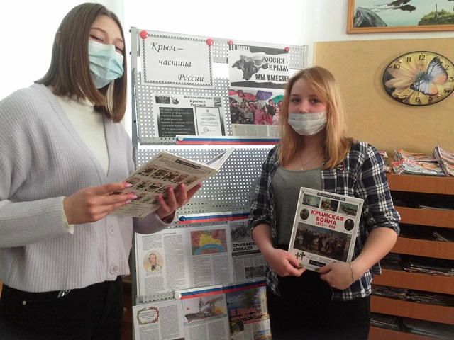 Ко дню воссоединения Крыма с Россией в Сосновецкой библиотеке для учащихся 10 класса прошел час истории «Россия и Крым снова вместе».