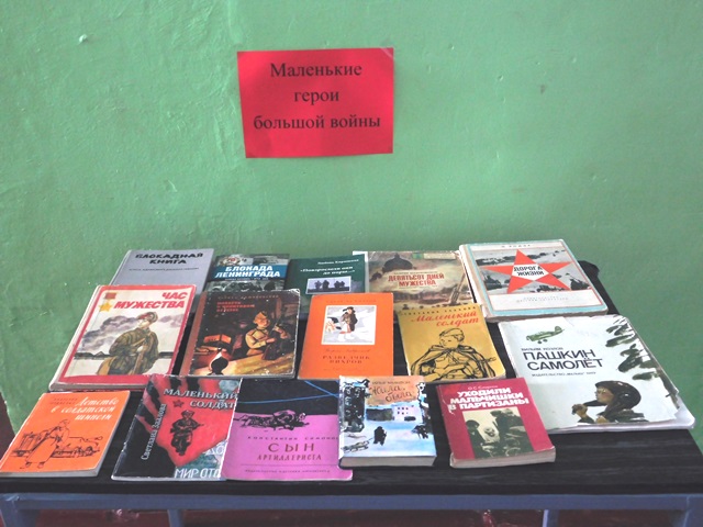 Чтобы знать о войне, чтобы помнить – нужно читать. О детях военной поры написано немало книг. На книжной выставке «Маленькие герои большой войны» были представлены художественные произведения: А. Гордиенко «Детство в солдатской шинели», О. Смирнова «Уходили мальчишки в партизаны», И. Миксона «Жила, была», С. Зааловой «Маленький солдат»и др. Мероприятие прошло на патриотической волне. Минутой молчания, стоя, дети почтили память погибших детей войны.