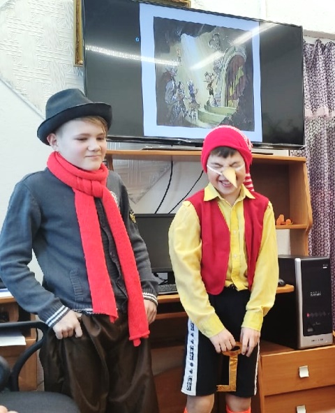 Бенефис – это торжественное мероприятие в честь читателя, писателя или произведения. Чтобы вспомнить содержание сказки ребята ответили на вопросы викторины. Юные артисты показали несколько сцен из сказки А.Н. Толстого. Роли исполнили: Буратино – Семен Насибов, Папа Карло – Максим Трубецкой, лиса Алиса - Катя Канцева, кот Базилио – Родион Арефьев, черепаха Тортила – Ульяна Шешукова, Фея – Виктория Данцис. В конце мероприятия мы сравнили сказку итальянского писателя Карла Коллоди «Пиноккио» и Алексея Толстого «Приключения Буратино». Ребята сделали вывод, что Пиноккио занят больше самовоспитанием, все его учат быть послушным и воспитанным, он не хочет быть самим собой, а хочет стать обыкновенным мальчиком. Буратино совершенно другой, он заступается за друзей, таких же кукол, как и он, смело идет на помощь, не думая о себе, ведь для него на первом месте - дружба.