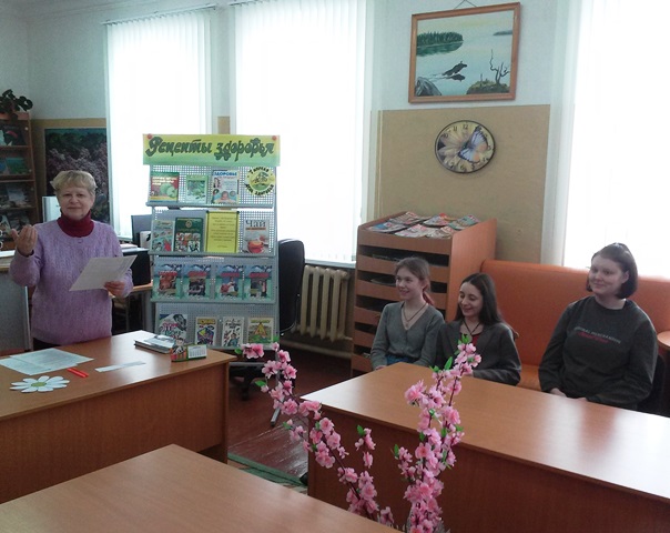 6 апреля мы пригласили восьмиклассников (учитель Е.А. Артиева) на интеллектуальную игру «Сделай здоровый выбор!», посвященную Всемирному дню здоровья. Игра была направлена на профилактику вредных привычек, на создание позитивных эмоций и на определение составляющих элементов ЗОЖ. В ходе игры команды приняли участие в нескольких конкурсах: интеллектуальной разминке «Альтернатива», «Хорошая пословица поднимет любого молодца», викторине «Мозговой штурм». Также школьники отвечали на вопросы о здоровом питании и о вредных привычках. Подводя итоги игры, ребята на лепестках ромашки написали составляющие элементы понятия «здоровый образ жизни». В заключение мы предложили всем желающим проверить свой вес.