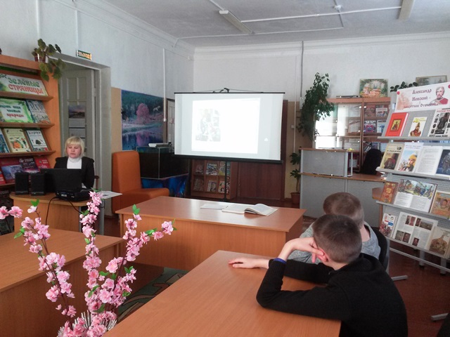 С книгами об этом великом полководце школьники могли познакомиться на книжной выставке «Александр Невский – защитник Отечества».