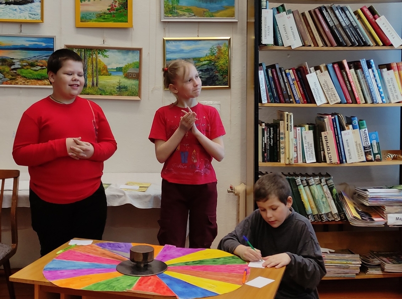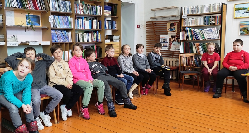 Ребята посмотрели презентацию о том, какие этапы воздухоплавания прошло человечество, прежде чем первый человек полетел в космос. Затем дети играли в игру Поле чудес. В финал вышли Никита Майоров, Алена Дёгтева, Марат Щедров. Победителем игры стала Алёна Дёгтева. Была оформлена книжная выставка «Календарь любопытных». Библиотекарь представила книги с книжной выставки, из которых можно узнать много интересного о космосе.