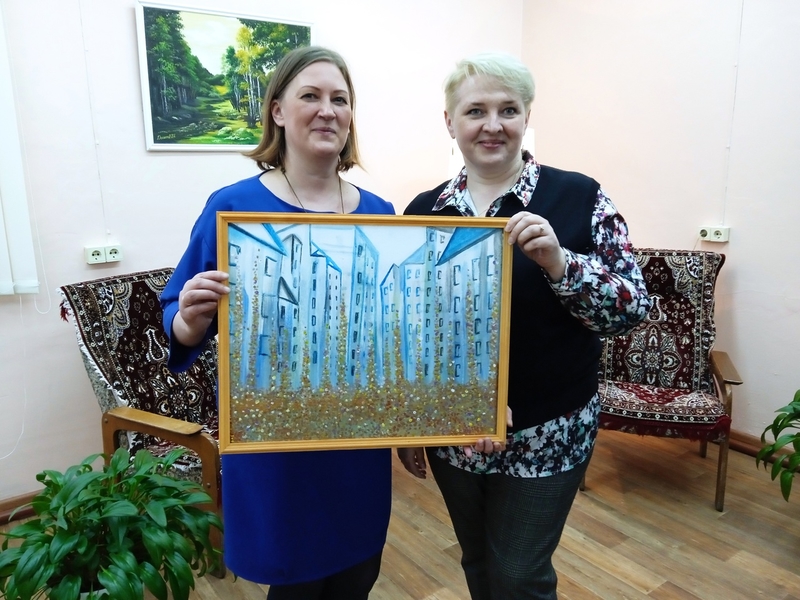 Формат «квартирника» помог сделать обстановку свободной и непринужденной. Творческая беломорчанка Елена Калабалина познакомила с авторской выставкой «На стульях». Картины свободно размещались на стульях, можно было не только рассматривать, но и брать их в руки. На работах Елены представлена абстрактная интерьерная живопись, где нет точного повторения реальности - это чувства, эмоции, ощущения, а цвет, форма, движение играют главную роль. Такие яркие работы можно вписать в любой интерьер, и, возможно, в скором времени найдутся желающие это сделать.